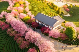 - Crowds have been flocking to a farm in Southwest China’s Guizhou province to get a look at its nearly 700,000 blossoming cherry trees. Shrouded in white and pink flowers, Pingba Farm is one of China’s most famous cherry blossom spots, attracting tens of thousands of tourists every year